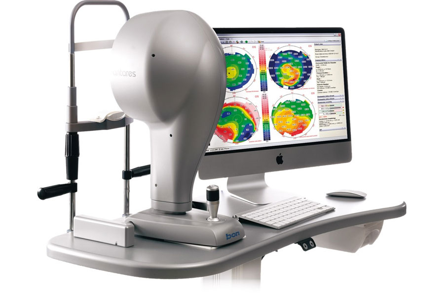 Si distingue dalla topografia perchè permette una mappatura della curvatura corneale totale (sia anteriore che posteriore) e la misurazione contemporanea dello spessore corneale (pachimetria). E’ fondamentale per la diagnostica e per il successivo follow up delle patologie ectasiche come il cheratocono e per il follow up della chirurgia corneale.